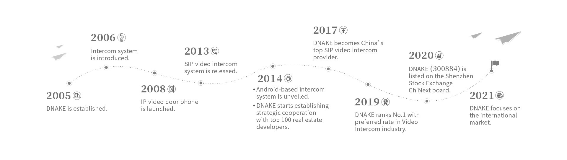 - 2020: DNAKE (300884) is listed on the Shenzhen Stock Exchange ChiNext board.