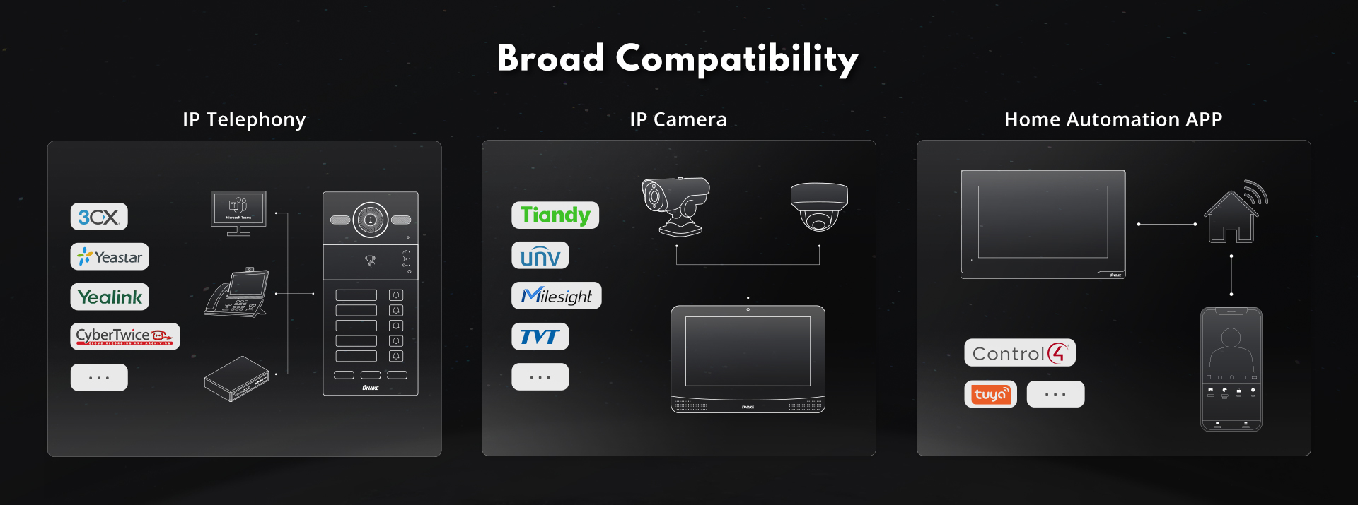 • Sauƙin haɗawa da sauran na'urorin SIP ta hanyar yarjejeniyar SIP 2.0