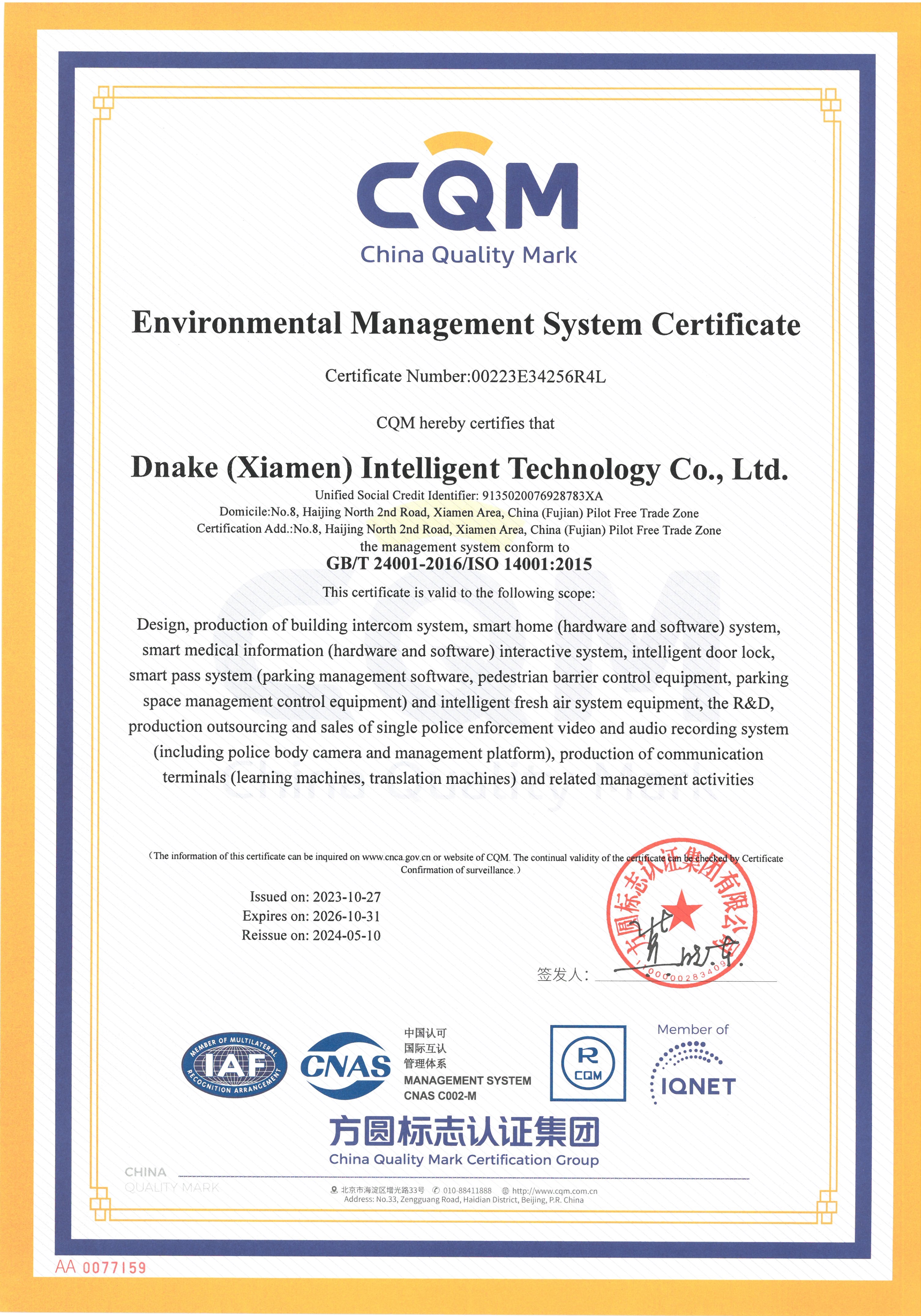 आयएसओ १४००१ प्रमाणन -