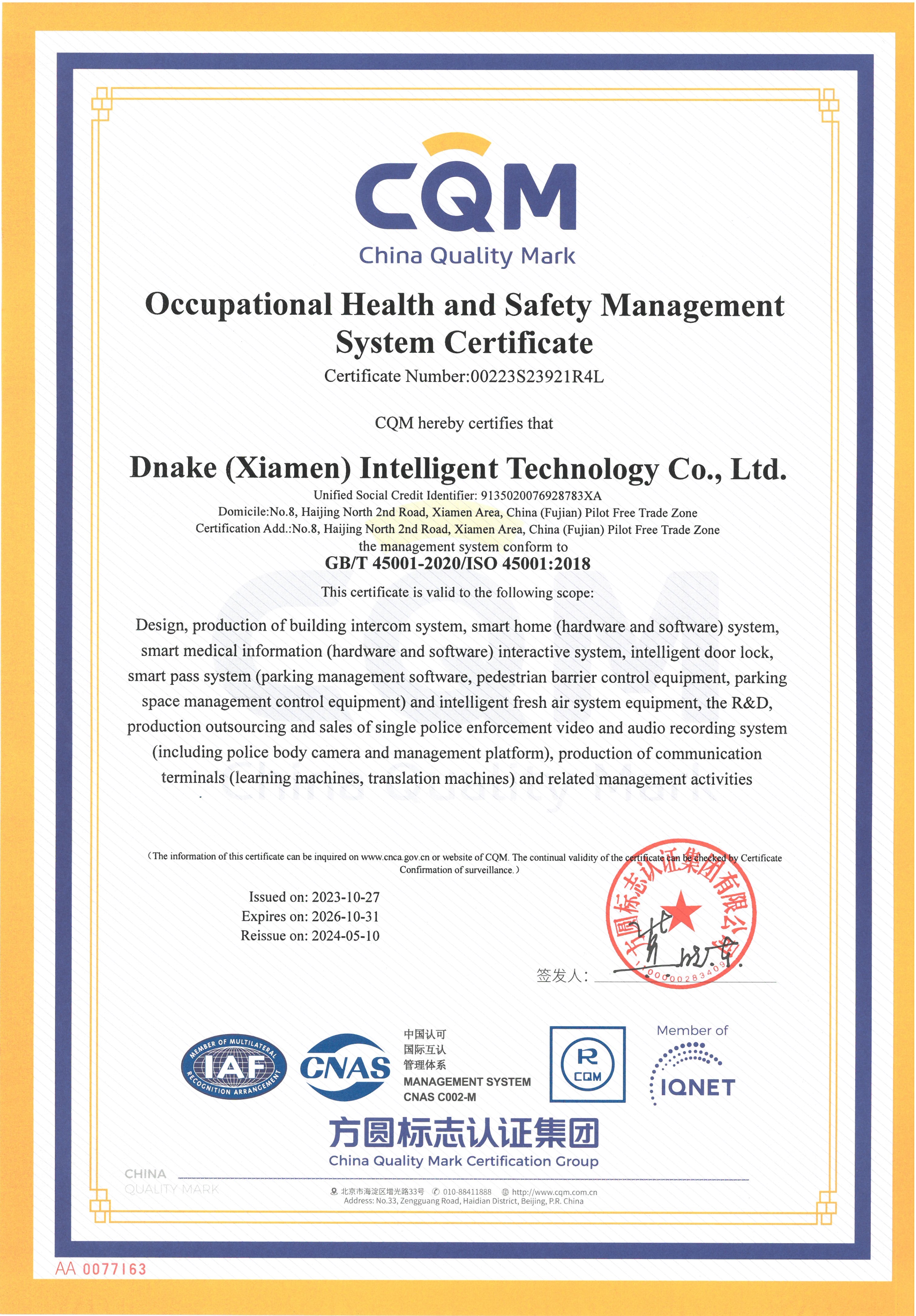 आयएसओ ४५००१ प्रमाणन -