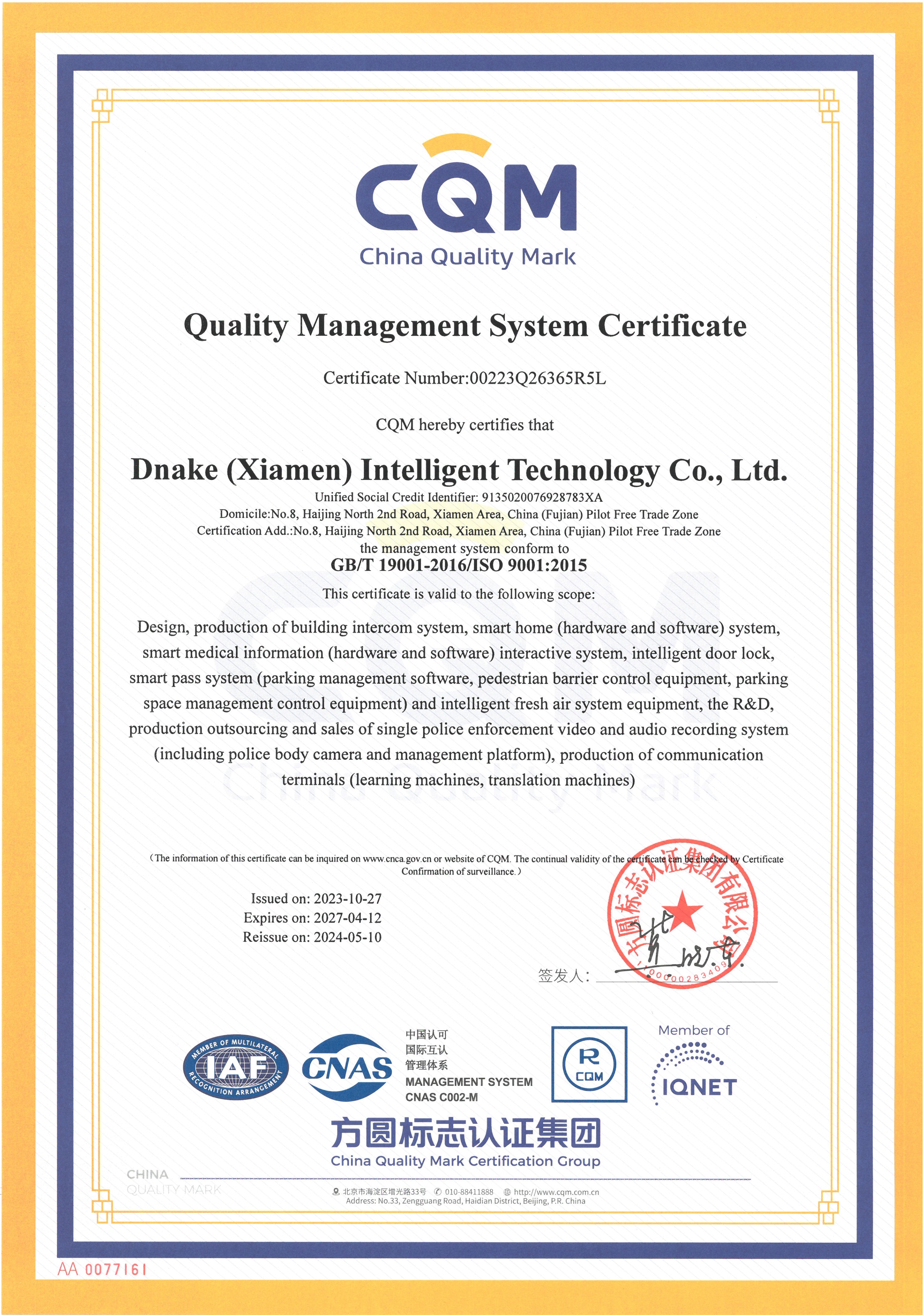 केएनएक्स सदस्यत्व प्रमाणपत्र -