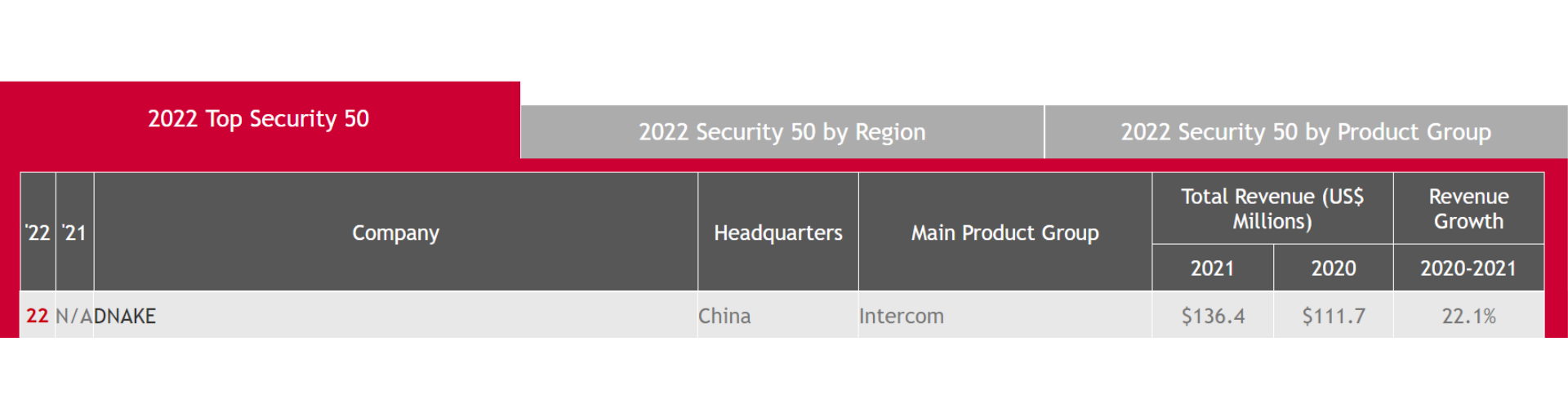 For more information on 2022 Security 50, please refer to: https://www.asmag.com/rankings/