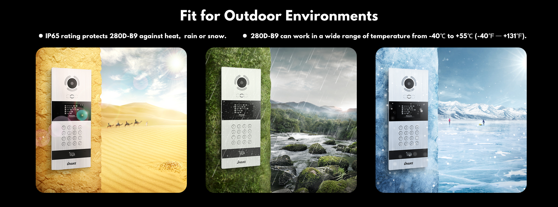 | Vlerësimi i IP-së | IP65 (Vulosni çarjet midis stacionit të derës dhe murit me ngjitës për xhami.) |