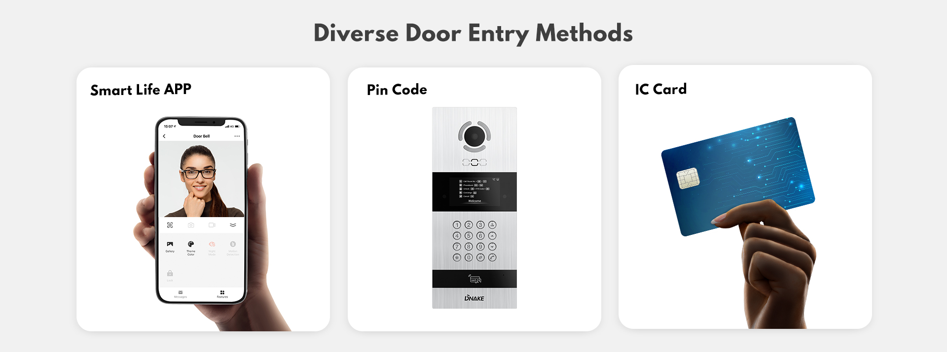 | Hyrja e derës | Kartë IC (13.56MHz), kod PIN, NFC |